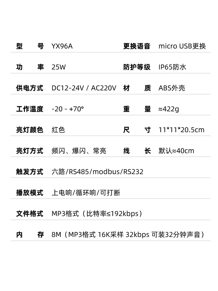±¾¹«Ë¾ÍƳöµÄYX96R-4LÉù¹â±¨¾¯Æ÷£¬ÓµÓе͹¦ºÄ¡¢³¤ÃüÃü¡¢×°Ö÷½±ã½Ã½ÝµÈÌØµã£¬Ö§³ÖUSB×ÔÐиü»»±¨¾¯¾äÒôÎļþ£»²úƷѡȡ¶à·¿ª¹ØÁ¿½ÚÔ죬½ÚÔ췽ʽµ¥Ò»·½±ã£¬¿ÉºÏÓÃÓÚ¶àÖÖ»·¾³¶ñÁӵij¡Ëù£¬ºÃ±È£ººìÉ«µÄµÆ¹âÄܹ»ÓÃÓÚÔÚ±äÂÒÏÖ³¡µÄÉùÒô±¨¾¯ºÍÉÁ¹â±¨¾¯£¬Ö»Óд¥·¢¼´·¢³öÉÁ¹âÐźźÍÉù±¨¾¯Ðźţ¬ÈÃÏÖ³¡ÈËԱѸ¿ì֪·ÏÖ³¡ÒÑ·¢×̱äÂÒ»òÉ豸¹ÊÕÏÌáÐÑ£¬¾¡¿ì²ÉÈ¡ÏàÓ¦´ëÊ©£¬Ô¤·À²úÉú³Á´óÈËÔ±¡¢²ÆÎïËðʧ£»Í¨¹ýÖÇÄܽÚÔìÄ£¿é»¹¿É½ÓÈëÉ¢²¼ÖÇÄÜ»ð¾¯×Ô¶¯±¨¾¯½ÚÔìϵͳÖС£